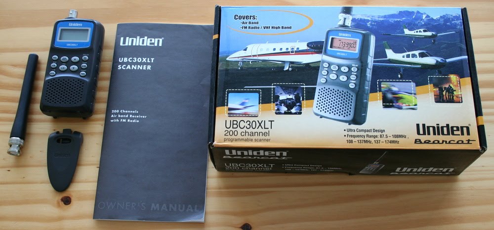 Již od začátků mé spotterské "kariéry" jsem začal pomalu pokukovat po nějakém levnějším radioscanneru, díky kterému bych mohl nejen vidět, ale i slyšet a porozumět leteckému provozu. A navíc, když jsem viděl, že skener má snad každý spotter, kterého jsem potkal, nemohl jsem si pomoct a začal o podobně krabičce také vážně uvažovat. Hned jsem věděl, že nepotřebuji zbytečně drahou hračku, stačil mi prakticky jen poslech leteckého pásma. Po dlouhém vybírání a prohledávání různých internetových obchodů s radiotechnikou jsem výběr omezil pouze na dva scannery - Maycom AR-108 a Uniden UBC30XLT. Jedná se o velice podobné přístroje, nakonec jsem se ale rozhodl pro Uniden - četl jsem na něj víc pozitivních ohlasů a líbil se mi více jeho design.Uniden Bearcat UBC30XLT je tedy jeden z nejzákladnějších digitálních radioscannerů, který se dá dnes pořídit. Je příjemně lehký a malý, vyroben z pevného plastu, který vypadá, že něco vydrží. Je napájen třemi AA bateriemi (což může být trochu problém, lichý počet baterií se vždy špatně řeší). Výdrž na klasické alkalické baterie je naprosto dostačující, vydrží rozhodně několik několikahodinových spotterských výletů. Mimo letecké pásmo (108-137 MHz) přijímá i FM rádio (87,5-108 MHz) a dále radioamatérské pásmo, kde se údajně nachází i např. námořní frekvence a bezpečnostní služby (137-174 MHz). Rádiový příjem na přibalenou pendrekovou anténu je pro mě naprosto dostačující, i z domova 5 km od letiště chytám perfektně jak letadla, tak pozemní stanice.